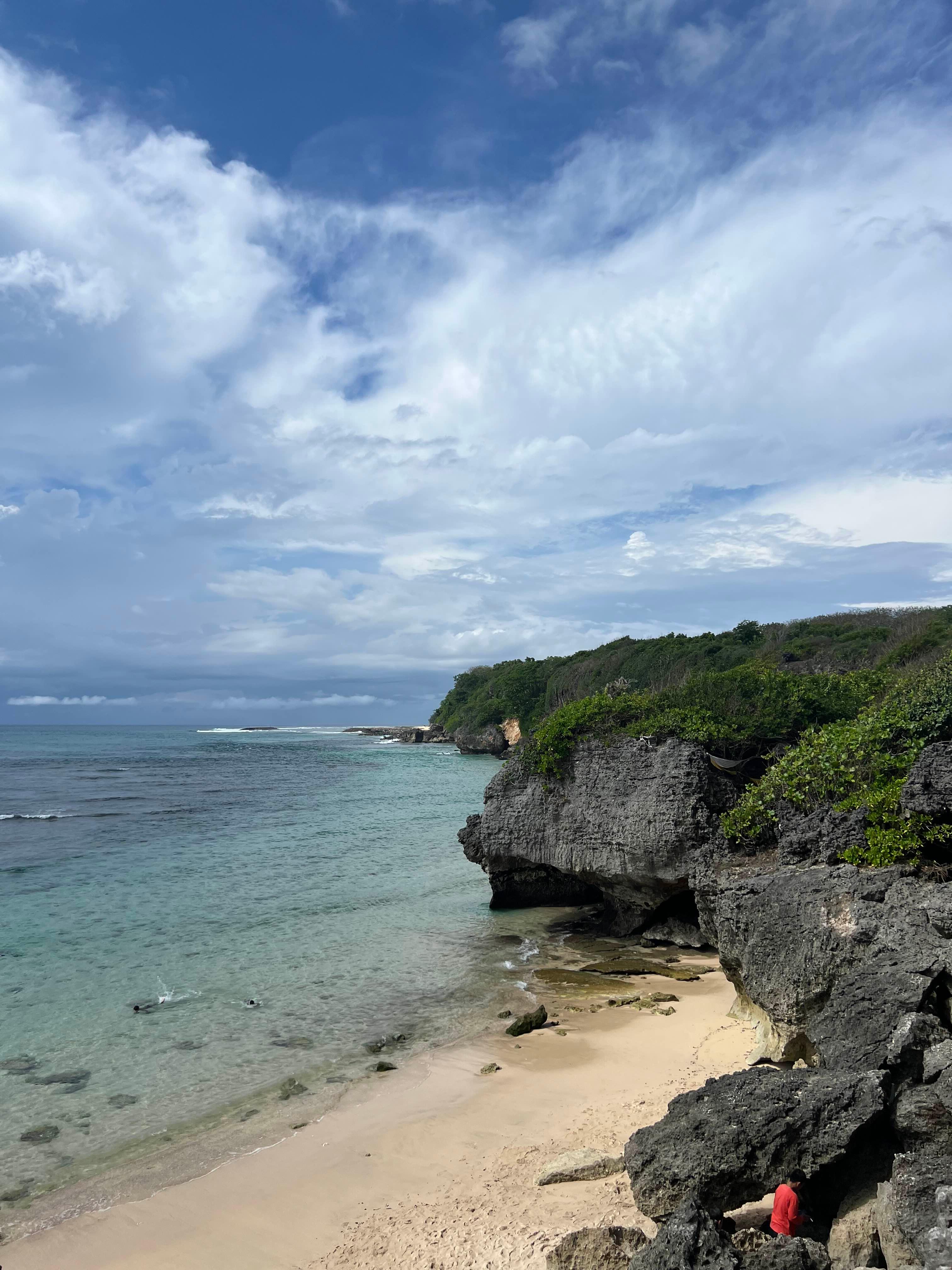 이번엔 남부 투어 가는 날. 소규모 그룹투어를 예약해는데 투어 인원이 나와 남편 둘, 정말 소규모였다. 처음엔 우붓 투어에 비해 재미가 덜했는데, 빠당빠당 해변에 갔다가 남편이 제안한 비치 클럽에 갔을 때 진짜 행복하다고 느꼈다. 일단 음식이 맛있었고! 무료로 이용 가능한 수영장이 뷰가 끝내줬다! 역시 나는 맛있는 거 먹거나 돈쓰면 행복해! 그리고 마지막으로는 절벽에 위치한 울루와투 사원과, 석양을 배경으로 한 케착 댄스 관람은 정말 오래도록 기억에 남을 것 같다.